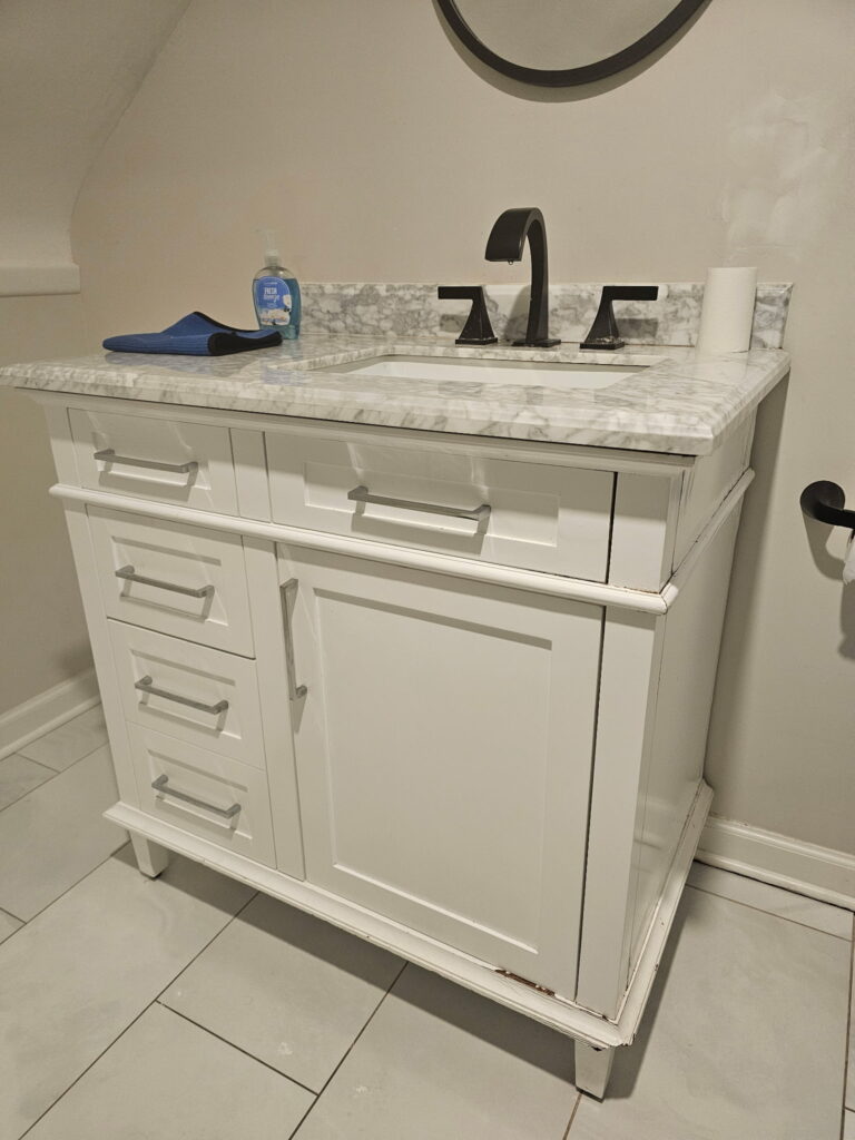 - Bathroom Vanity Replacement – Clean Install, Solid Finish.