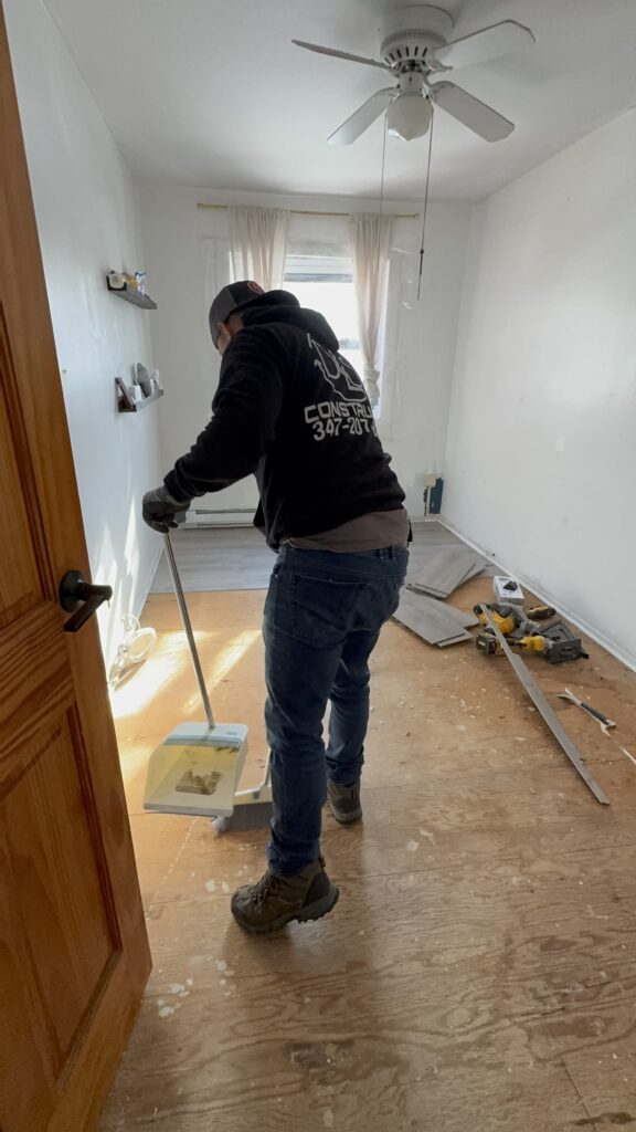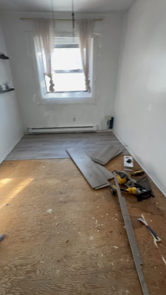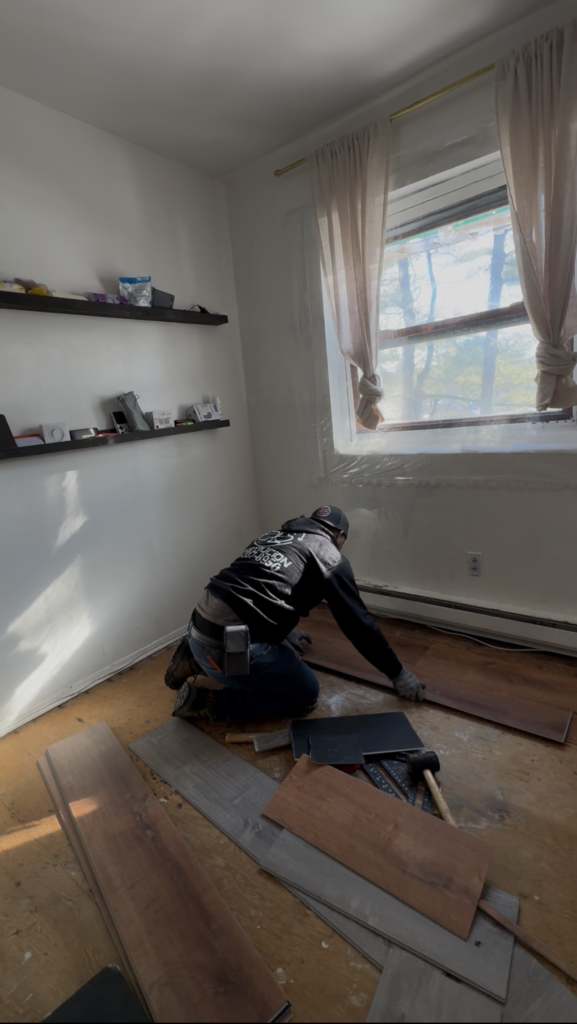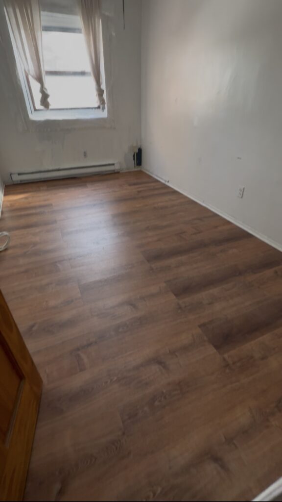 Even without the original condition documented, this space required proper prep work to ensure a smooth and long-lasting result. The process included leveling, surface cleaning, and careful installation of high-quality flooring planks.