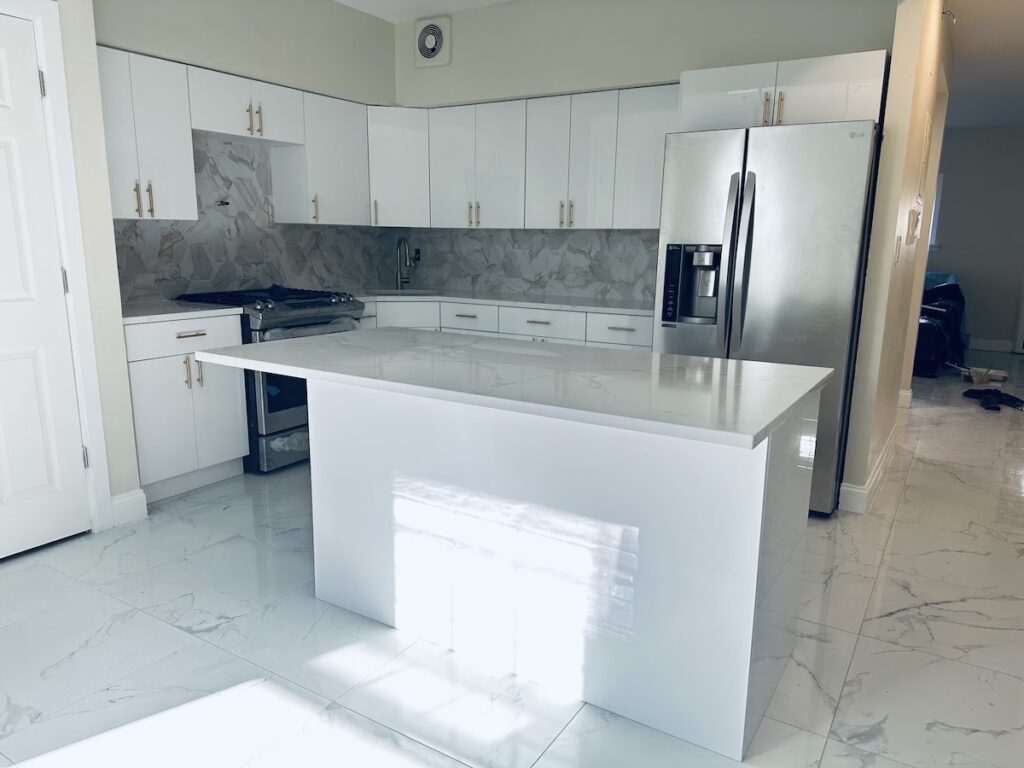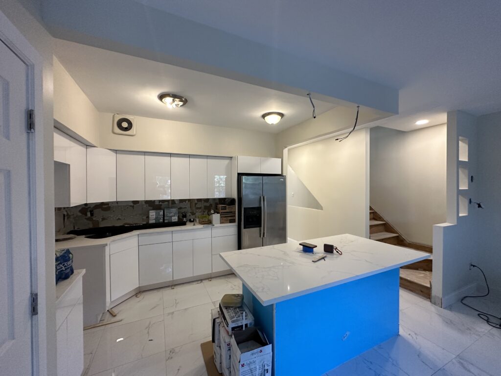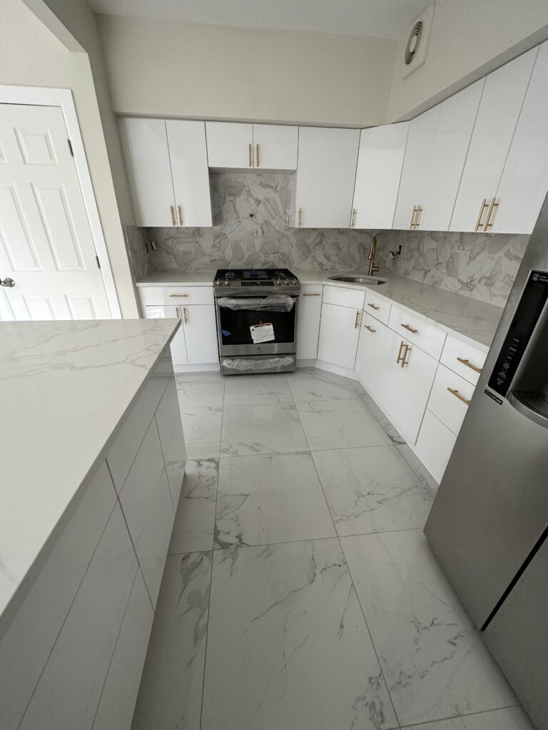 Jhonny led the project from start to finish, beginning with a full demolition that removed existing cabinets, flooring, countertops, and finishes, creating a clean slate for a complete rebuild.