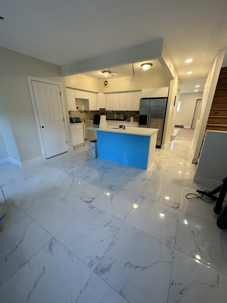 The renovation included the installation of new tile flooring, custom cabinetry, modern countertops, backsplash tile work, updated lighting, plastering, and professional painting. Each detail was carefully executed to ensure durability, clean finishes, and a cohesive modern look.