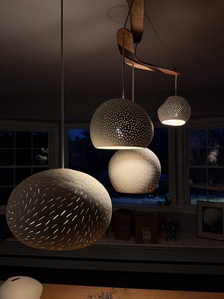 This project started with a completely empty ceiling and no existing fixture. The client selected a stunning handmade pendant light, and we handled the full installation from scratch.