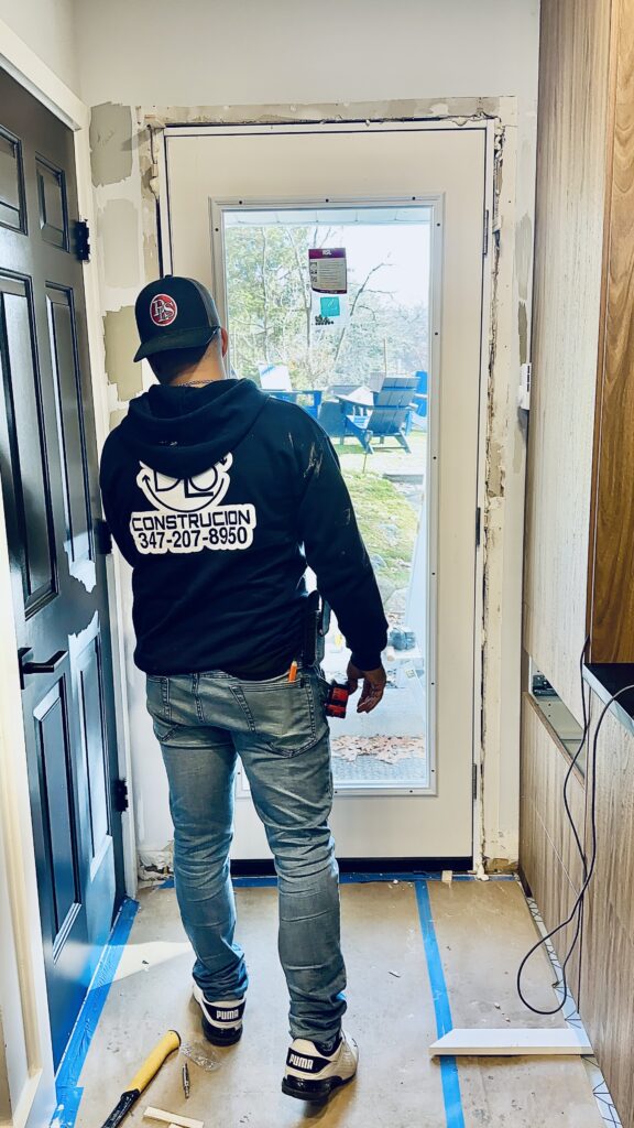 - Modern Front Door Installation with Custom Fit & Clean Finish.