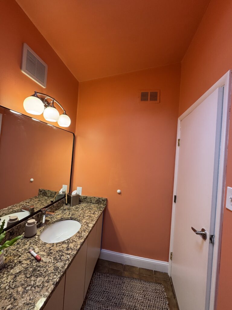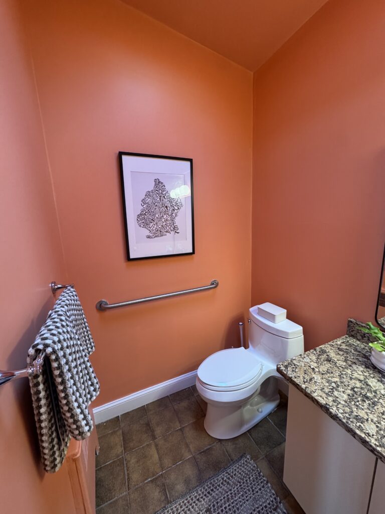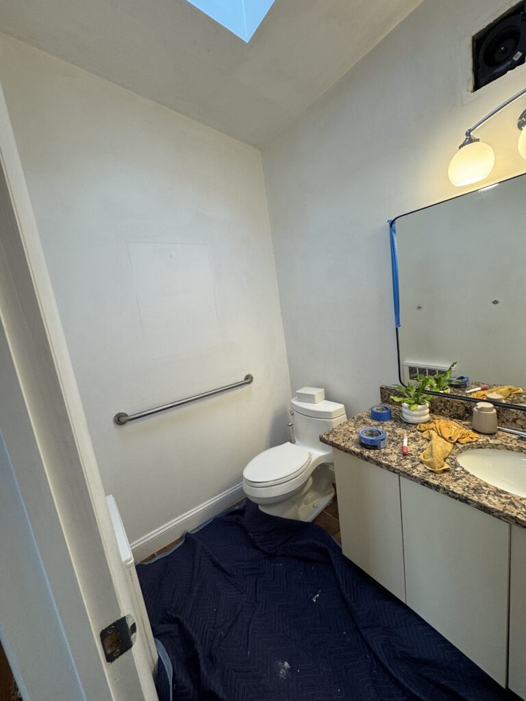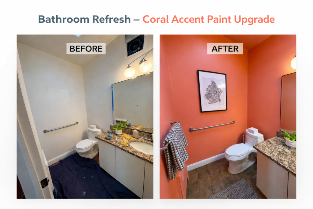 The result is a refreshed half bathroom that feels more vibrant, modern, and personalized. Even small updates like proper wall preparation and high-quality painting can make a noticeable difference in the overall look and feel of a space.