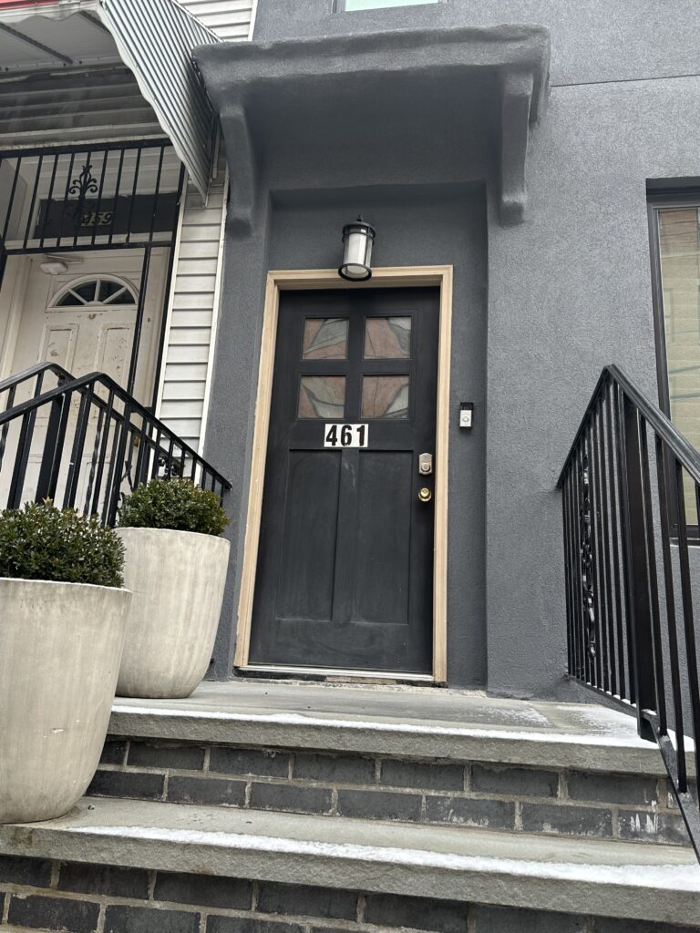 A new modern door with glass paneling was installed, allowing natural light to enter the entryway while maintaining privacy and security. The installation included a new frame, proper sealing, and precise alignment to ensure smooth operation and long-term durability.